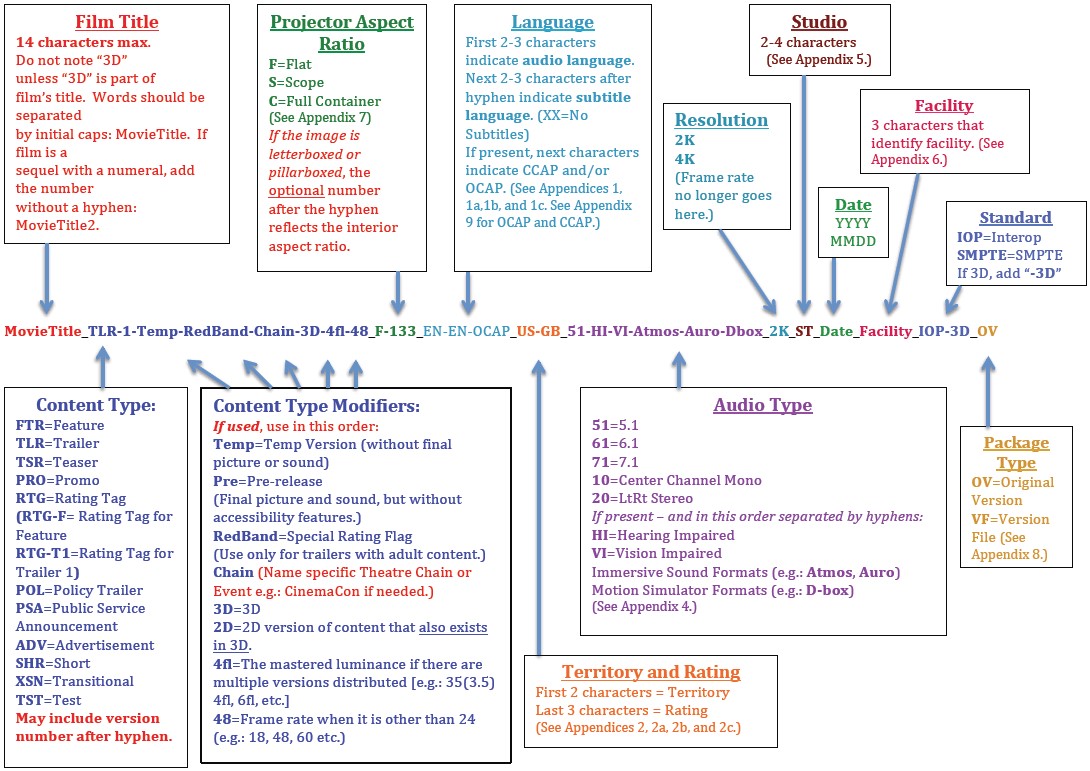 É o formato utilizado para identificar todos os aspectos do filme quando ele é ingestado no servidor, conforme exemplo abaixo: